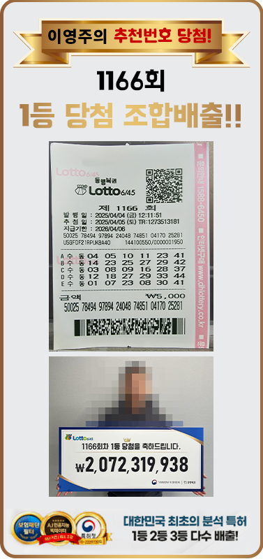◆실시간 복권 당첨자집계 1위 이영주! 확실한 당첨번호 드립니다.◆